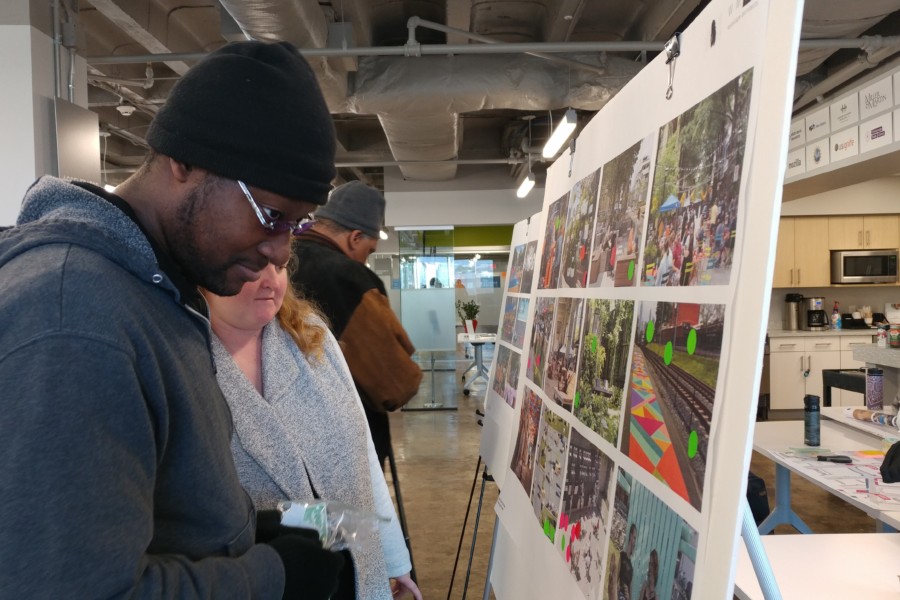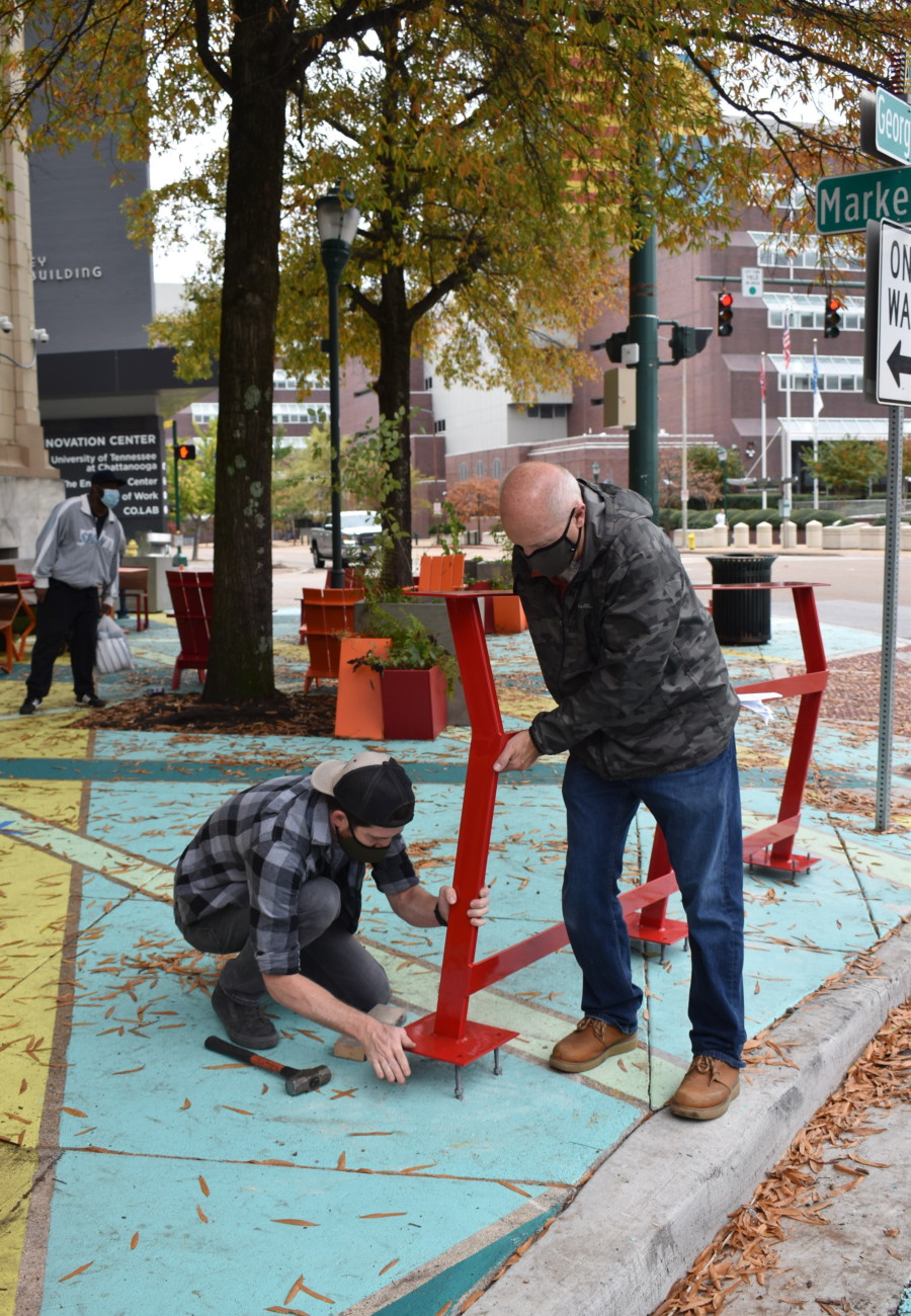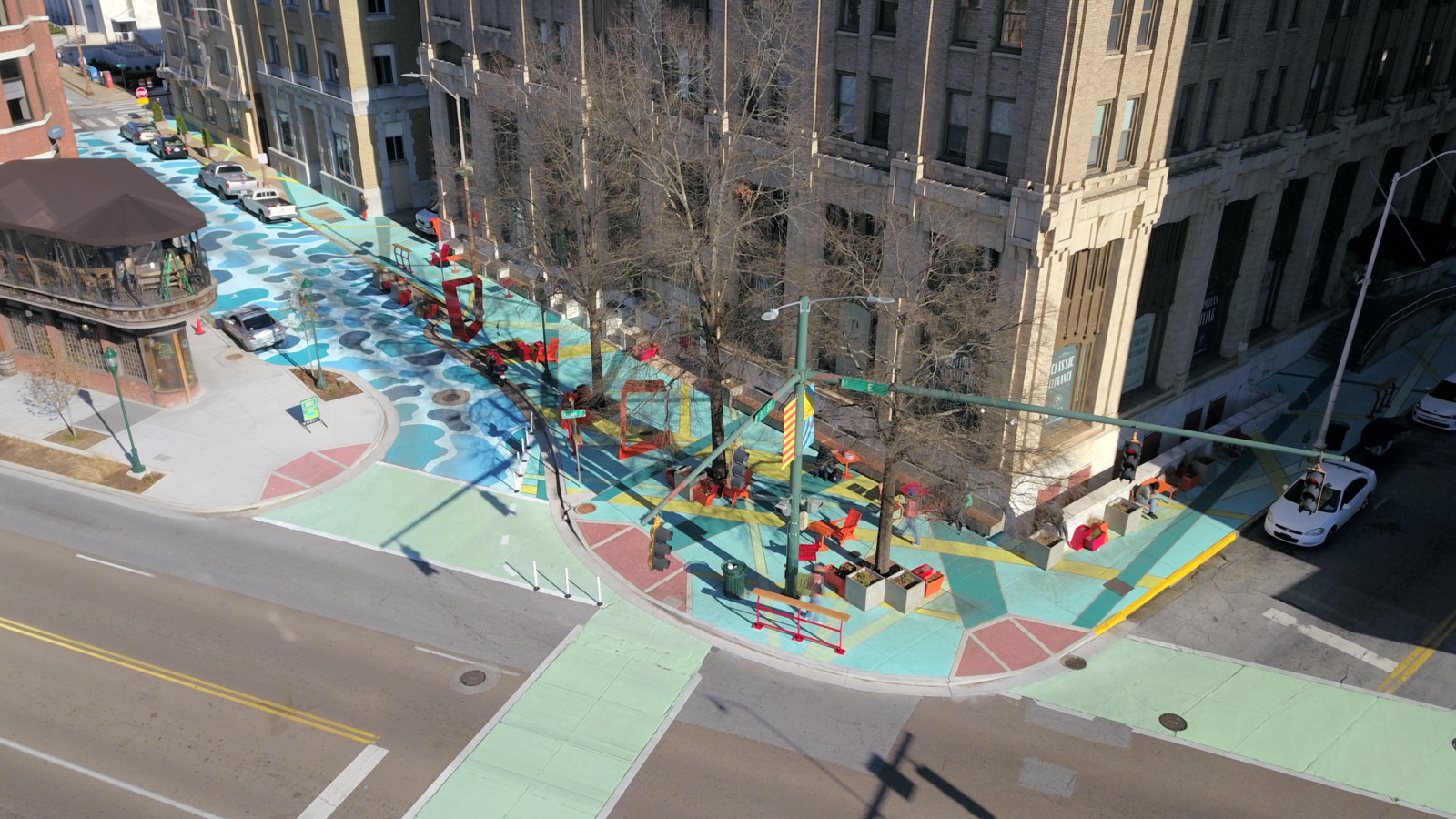 As the winner of a 2021 National American Society of Landscape Architects (ASLA) Honor Award in Urban Design, the Market Street + George Avenue Public Space design process featured a collaboration between WMWA and local artist, Genesis the Greykid. Focusing our attention on the public right-of-way around the historic Patten Towers, which is the downtown’s densest residential block, our process prioritized thoughtful public engagement as a means of delivering flexible and testable design solutions to those who regularly inhabit these spaces. WMWA worked with Genesis to organize an engagement framework that was adapted from Genesis’s “Words in Gray” creative workshop, where open and informal conversations between designers, stakeholders, and community members built trust, consensus, and a clear vision for the future. Over the span of eight weeks, these numerous “Micro Sessions” provided an opportunity for members of the community to voice their concerns about past economic inequalities and systemic marginalization, while creating a constructive space for those who wished to envision a more equitable future. Much like the structure of our engagement, the framework of our design process prioritized the input and participation of the community. After working through a series of initial concepts, interactive engagement strategies, like the “Resource Allocation Exercise,” distilled our abstract ideas into a tangible experience and immediately gave voice to the community’s feedback. Ultimately, this approach was instrumental in formalizing a hierarchy of design interventions and created an opening for the community to forge a sense of ownership of the final product. From colors and patterns to site furnishings and material palettes, the resulting design was a direct reflection of the needs and desires of the community. With the help from community members, the design team, and several volunteers, WMWA completed the project in 2020.