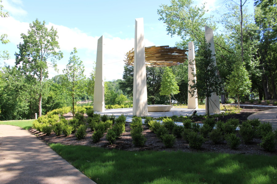 Honoring the tragic deaths of five military personnel in July 2015, the City of Chattanooga commissioned artists Shane Albritton and Norman Lee of RE:site Studio to develop and construct their memorial proposal entitled the “Wreath of Honor”. The memorial features a sculptural wreath composed of stainless-steel arc bands tethered to five limestone pillars, each representative of one of the victims. WMWA was tasked to develop a planting plan for the memorial. Our approach emphasized the structural form of the artist’s design, while not detracting from the visual significance of the memorial. Strengthening the choreography of the five pillars, five white oaks were planted to tightly encircle the memorial, while native grasses and perennials spread out into the broader landscape.